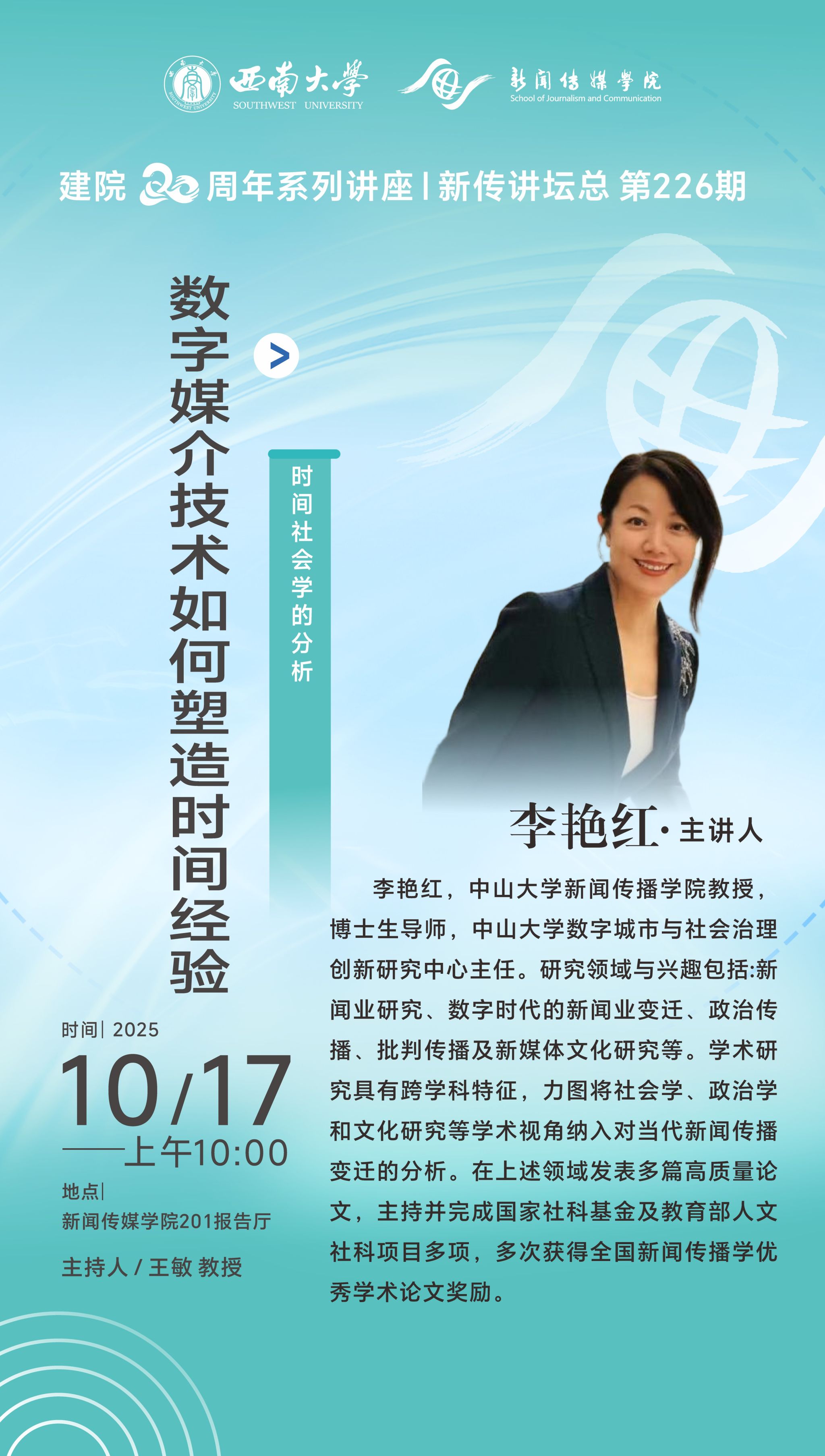 建院20周年系列讲座 | 新传讲坛总第226期 | 李艳红:数字媒介技术如何塑造时间经验—时间社会学的分析