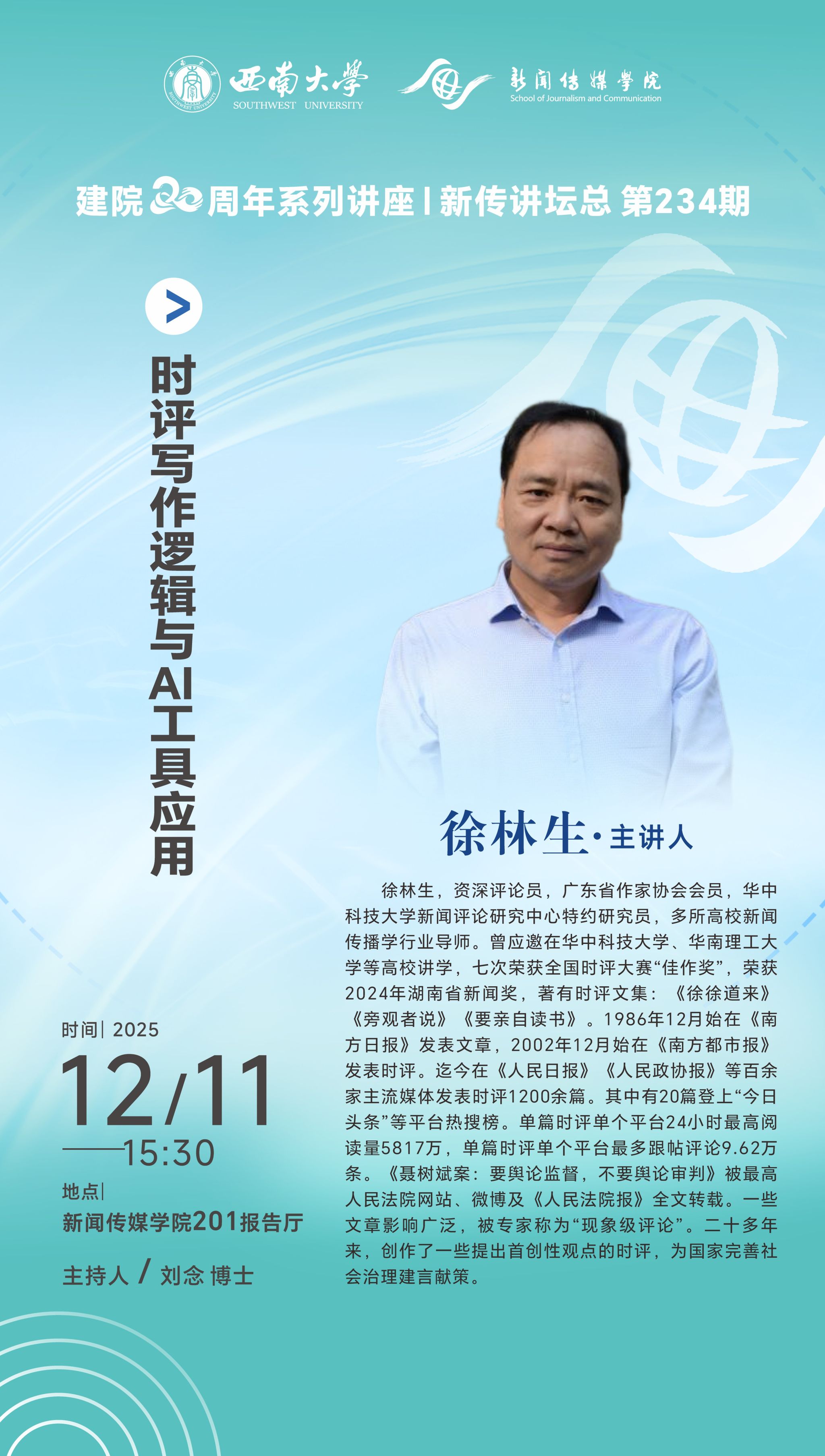 建院20周年系列讲座 | 新传讲坛总第234期 | 徐林生:时评写作逻辑与AI工具应用