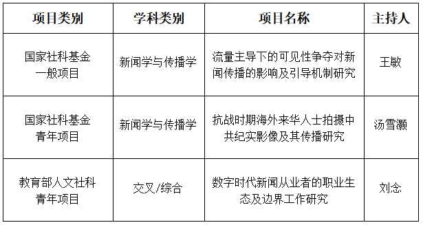 近日,全国哲学社会科学办公室、教育部社会科学司相继公布了2025年国家社会科学基金年度项目立项结果和教育部人文社会科学研究项目评审结果,新闻传媒学院获批2项国家社科基金项目、1项教育部人文社科项目。