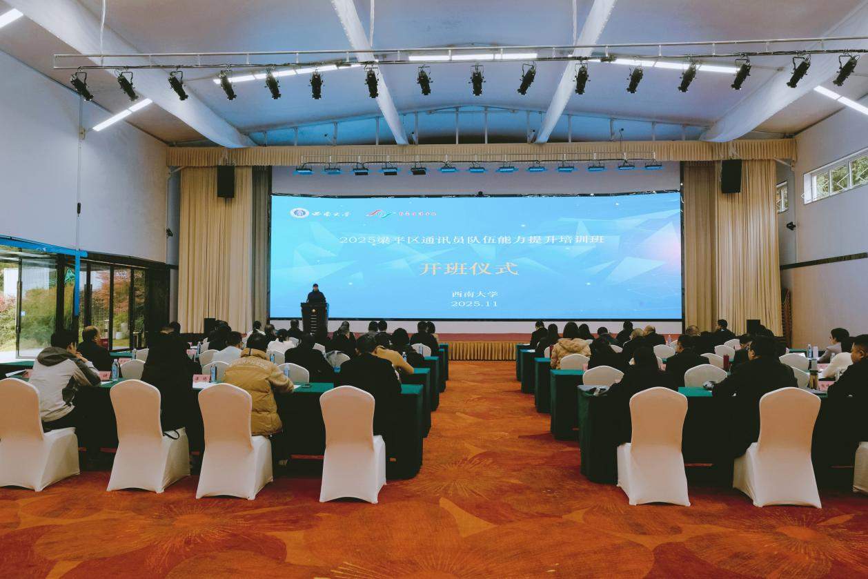 为适应全媒体时代发展要求,提升基层宣传队伍专业素养与履职能力,11月11日上午,由西南大学新闻传媒学院与中共重庆市梁平区委宣传部联合举办的“2025年梁平区通讯员队伍能力提升培训班”开班仪式在梁平区委党校和美乡村学校隆重举行。梁平区委宣传部副部长李静,西南大学新闻传媒学院副院长赵剑出席仪式并致辞。仪式由学院社会服务中心主任王命洪主持。