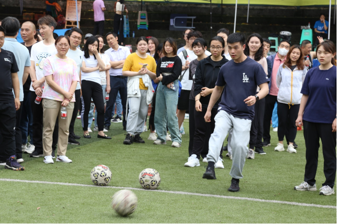 (老师们在参加足球射门)