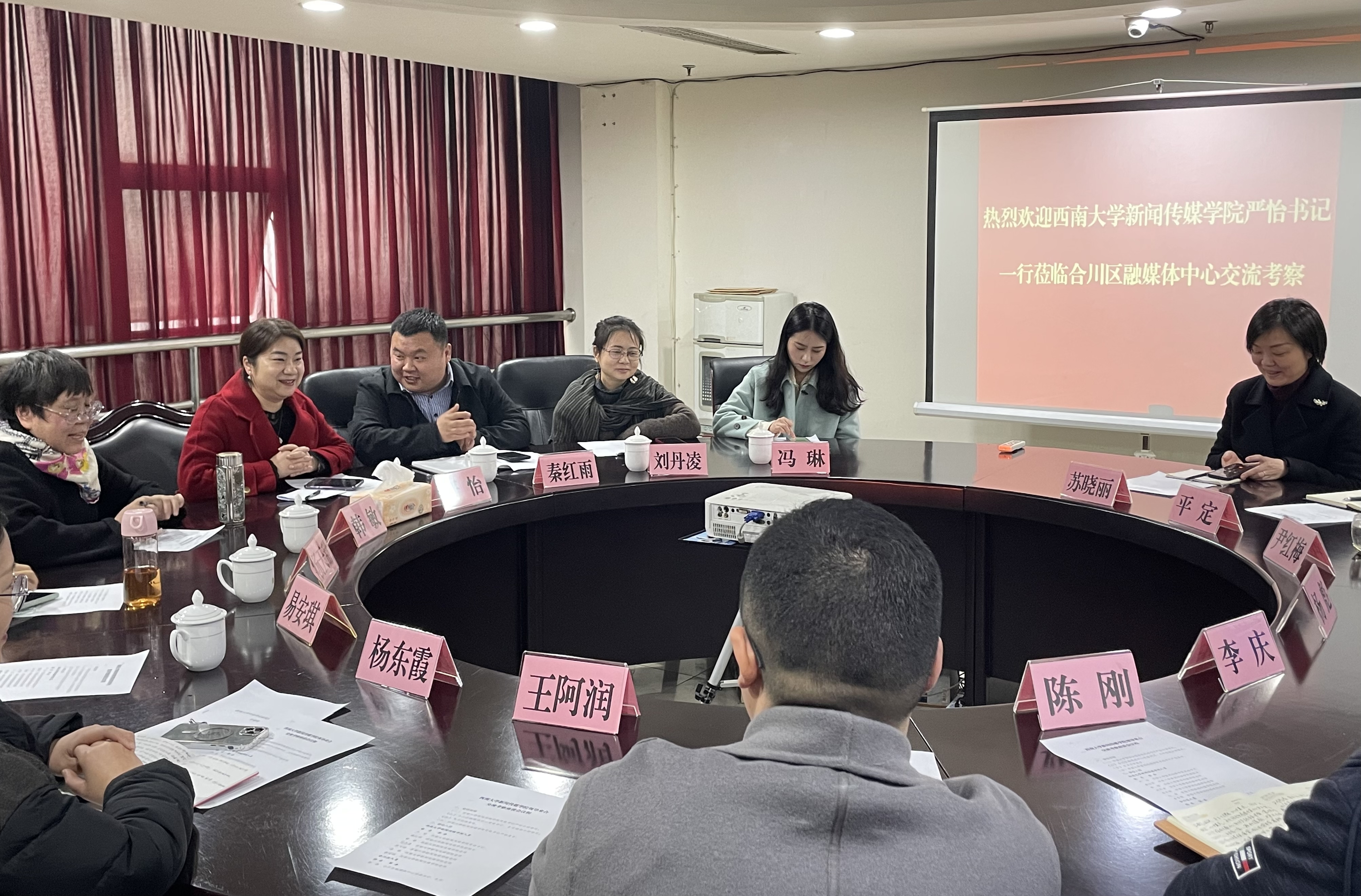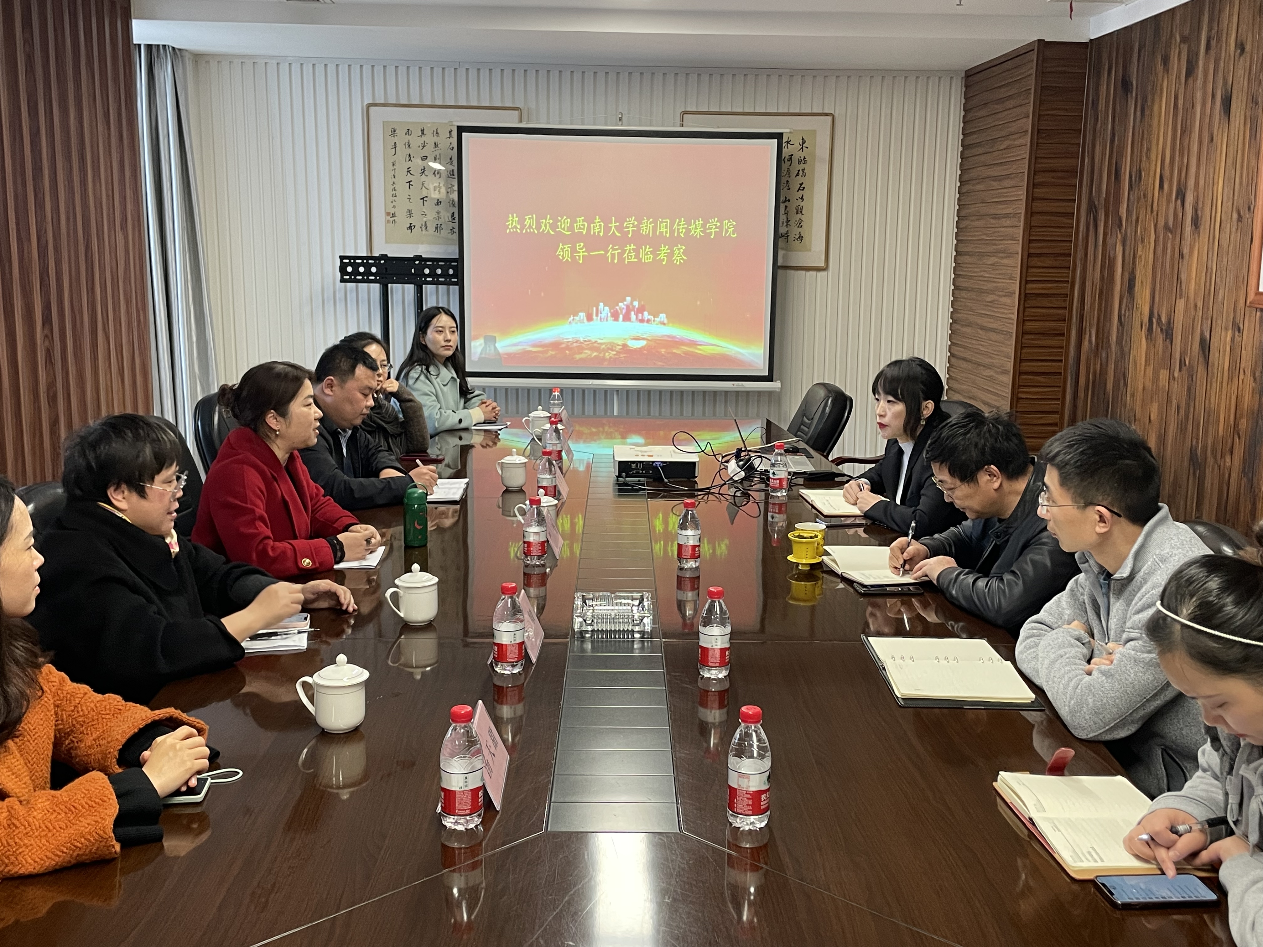 3月2日,西南大学新闻传媒学院党委书记严怡、副院长秦红雨,新闻学系主任刘丹凌、传播学系主任韩敏、广播影视系教师汤天甜,本科生辅导员冯琳、研究生辅导员易安琪一行7人赴重庆市合川区融媒体中心、重庆出版集团至弘文化传媒有限公司、重庆日报报业集团新家长报传媒有限公司,就院企合作模式、实践基地发展、人才培养等议题进行恰谈。