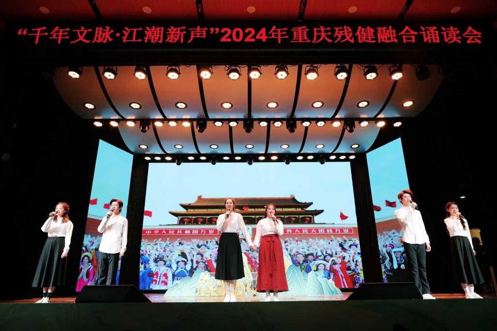 我院师生与残疾人朋友通过《长江之歌》《绣红旗》等经典篇目的联合演绎、《渝我共筑长江生态屏障》《礼赞新时代》等融合节目的创新呈现,打造了视觉与听觉的双重盛宴,用残联融合的创新话语歌颂着长江精神的千年文脉,在阅读中感受中华优秀文化魅力,展现了残疾人朋友丰富多样的精神文化生活。
