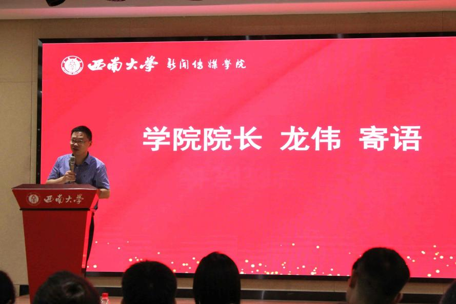 我校新闻传媒学院院长龙伟寄语新生,他首先对全体新生的到来表示热烈欢迎,随后围绕学院的办学理念、学科优势、师资力量与人才培养成果展开介绍,同时勉励新生们要树立明确目标,主动拥抱传媒行业的变革与挑战,既要夯实专业基础,也要培养创新思维,努力成长为有理想、有本领、有担当的新时代传媒人。