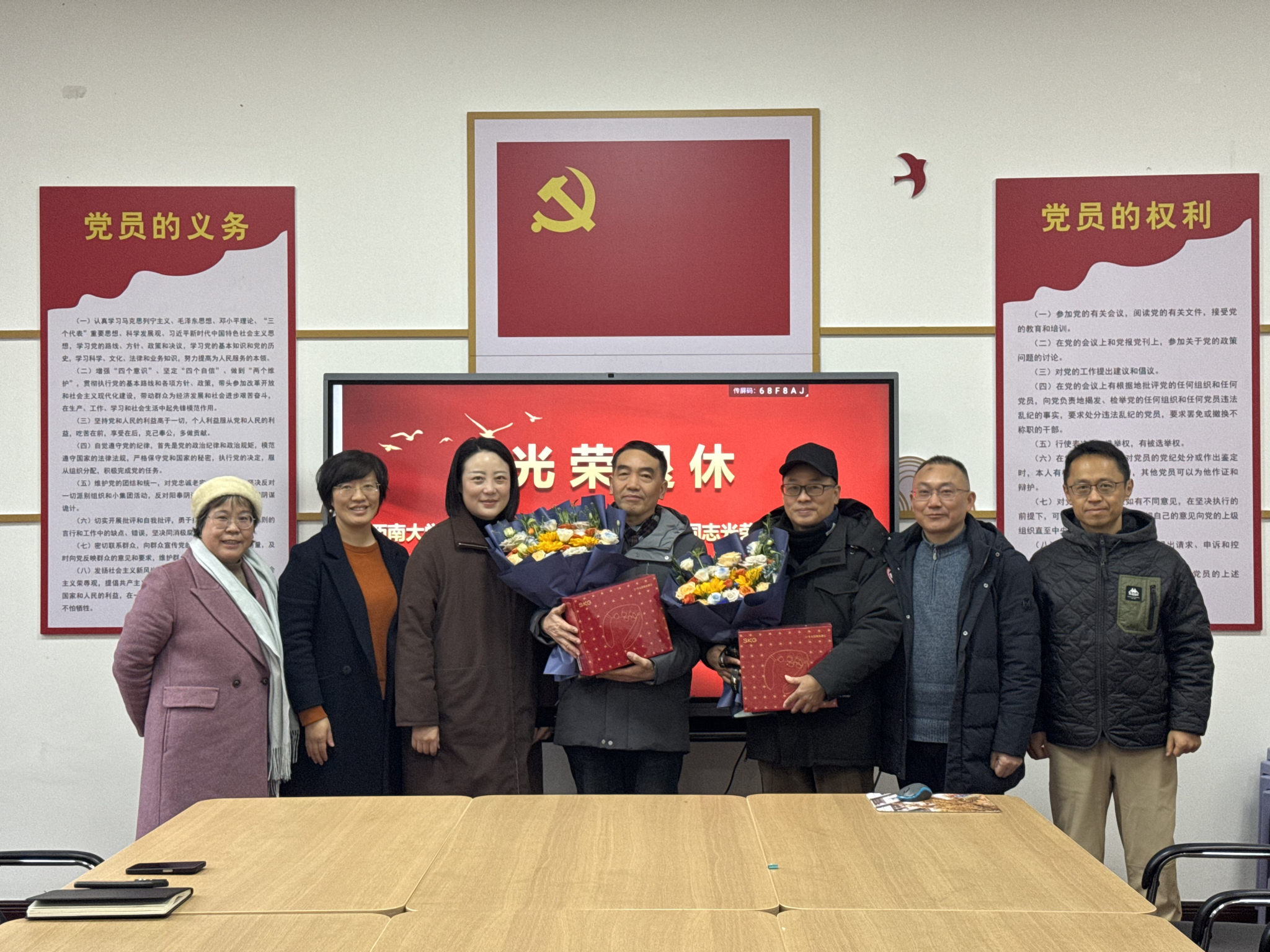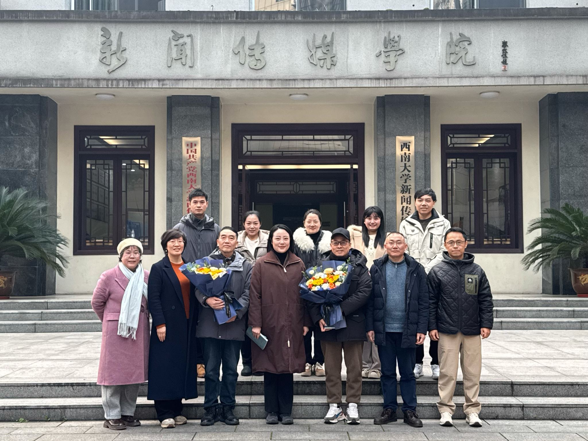 1月12日上午,新闻传媒学院为退休教师唐远洋、刘重君举行荣休仪式。学院领导班子成员、实验管理口全体工作人员及部分教师代表齐聚一堂,共同致敬两位老师数十年的辛勤耕耘与无私奉献。